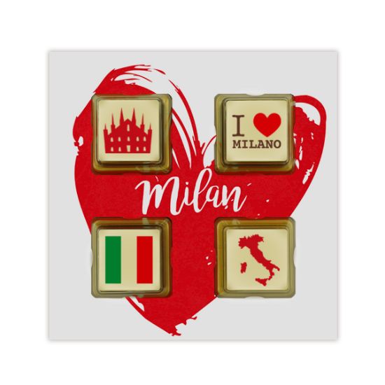 Chococommunicatie voor fijnproevers! Het hart van de volledig zelf te ontwerpen wenskaart bestaat uit vier individueel verpakte overheerlijke bonbons. Deze is niet alleen te voorzien van een eigen logo-opdruk; nee, zelf een foto behoort tot de mogelijkheden. De bonbons hebben een hazelnoot-praliné vulling en is overtrokken met Belgische witte chocolade. Wij werken uitsluitend met duurzaam geproduceerde Cocoa Horizons chocolade van het Belgische merk Barry Callebaut. De minimale afname bedraagt 240 stuks. In verband met transportbeschadigingen worden de chocolaatjes los en de kaartjes los aangeleverd. Je dient voor het uitdelen dus nog zelf de chocolaatjes in de kaartjes te bevestigen.