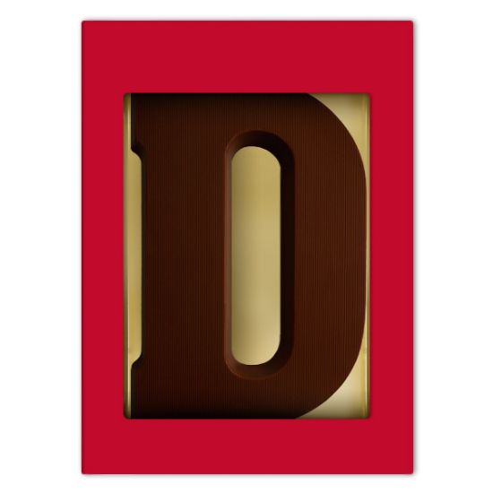 Een chocoladeletter D gemaakt van overheerlijke pure Belgische chocolade, die ook nog eens duurzaam geproduceerd is. De letter weegt 200 gram en wordt verpakt in een rode geschenkdoos. 100% Vegan!