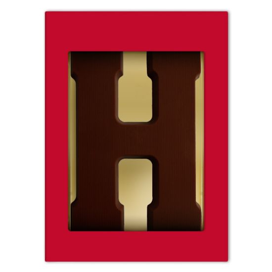 Een chocoladeletter H gemaakt van overheerlijke pure Belgische chocolade, die ook nog eens duurzaam geproduceerd is. De letter weegt 200 gram en wordt verpakt in een rode geschenkdoos. 100% Vegan!