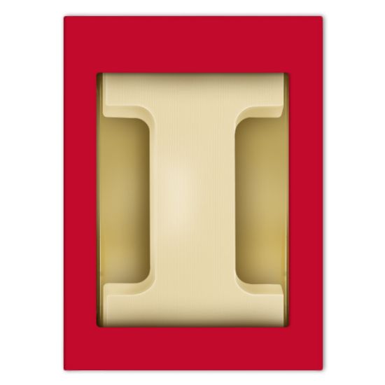 Een witte chocoladeletter I (200 gram) verpakt in een luxe rode geschenkdoos. De chocoladeletters van ChocoABC worden gemaakt van Belgische duurzaam geproduceerde Cocoa Horizons chocolade van het chocolademerk Barry Callebaut.