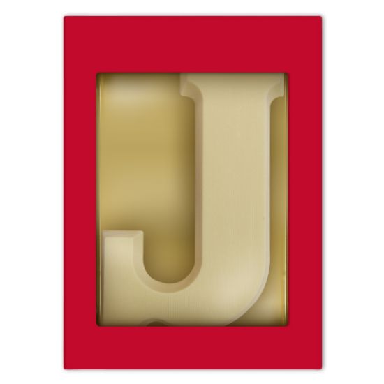 Een mooie luxe rode geschenkdoos voorzien van een chocoladeletter J wit. De letter weegt 175 gram en wordt gemaakt van duurzame chocolade van het Belgische Chocolademerk Barry Callebaut.
