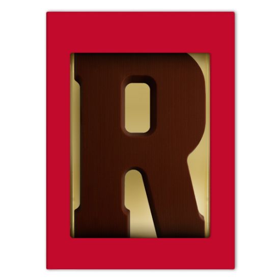 Een chocoladeletter R gemaakt van overheerlijke pure Belgische chocolade. De letter weegt 200 gram en wordt verpakt in een rode geschenkdoos. 100% Vegan!