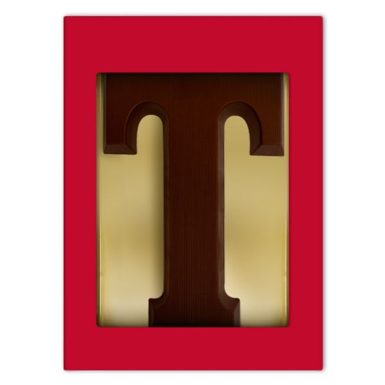 Een mooie luxe rode geschenkdoos voorzien van een chocoladeletter T puur. De letter weegt 175 gram en wordt gemaakt van duurzame chocolade van het Belgische Chocolademerk Barry Callebaut.