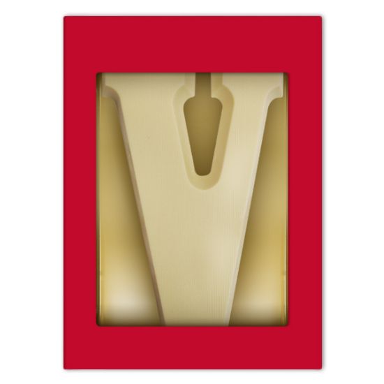 Vanaf 12 chocoladeletters V wit ontvang je een speciale prijs per stuk. De chocoladeletter wordt gemaakt van duurzaam geproduceerde Cocoa Horizons Belgische witte chocolade van het top chocolademerk Barry Callebaut. De letter wordt per stuk verpakt in een mooie rode vensterdoos.