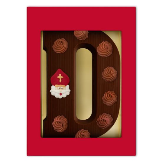 Deze luxe chocoladeletter D is opgespoten met een heerlijke chocoladedecoratie en voorzien van een vrolijke sinterklaas afbeelding. Deze luxe chocoladeletter wordt verpakt in een fraaie vensterdoos. Een mooi chocoladecadeau om te geven, een heerlijk chocoladecadeau om te krijgen.