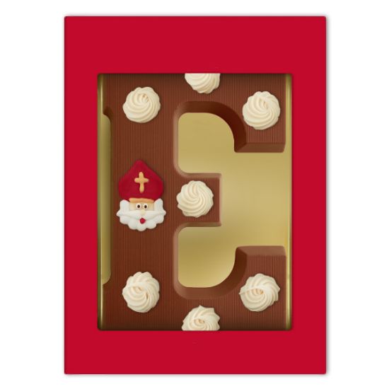 Deze luxe chocoladeletter E is opgespoten met een heerlijke chocoladedecoratie en voorzien van een vrolijke sinterklaas afbeelding. Deze luxe chocoladeletter wordt verpakt in een fraaie vensterdoos. Een mooi chocoladecadeau om te geven, een heerlijk chocoladecadeau om te krijgen.
