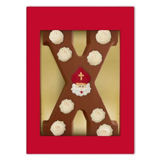 Deze luxe chocoladeletter X is opgespoten met een heerlijke chocoladedecoratie en voorzien van een vrolijke sinterklaas afbeelding. Deze luxe chocoladeletter wordt verpakt in een fraaie vensterdoos. Een mooi chocoladecadeau om te geven, een heerlijk chocoladecadeau om te krijgen.