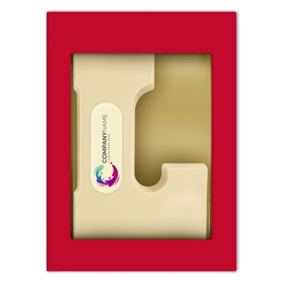 De witte chocoladeletter L van maar liefst 200 gram, voorzien van een marsepeinen schildje (7 x 2,5 cm) met jouw wenstekst of logo. De logoletter L wit is te bestellen vanaf 10 stuk en wordt per stuk verpakt in een mooie rode vensterdoos.